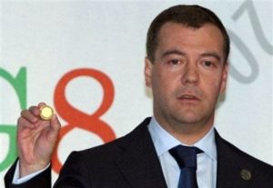 Pada tahun 2009, di acara G8 Summit Presiden Rusia Dmitry Medvedev mengeluarkan sebuah koin yang diklaim sebagai contoh uang yang akan digunakan dalam pembayaran secara internasional. Uang yang dapat berlaku secara internasional tersebut diharapkan mampu menggantikan kedigdayaan dolar Amerika sebagai mata uang acuan perdagangan internasional.